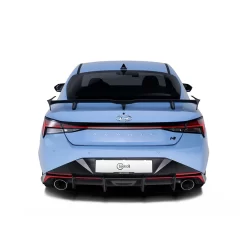 The revised Hyundai Elantra N rear spoiler by ADRO that is made completely from handcrafted carbon fiber. The ADRO spoiler is not only incredibly beautiful, but is extremely strong and lightweight. Our carbon fiber Hyundai Elantra N spoiler is perfect for show builds, track cars, or daily drivers, so no matter what your style, this spoiler is going to be a perfect fit. This spoiler sits slightly higher than the factory one and has one of the most aggressive designs out of any spoiler that’s available for this car. The carbon fiber construction also means that the spoiler is not only incredibly strong but it’s incredibly lightweight as well, perfect for a car that keeps weight savings in mind.