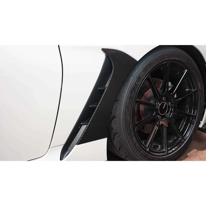 Excessive heat can cause major and expensive damage to critical components in a car. Components in the engine bay need good air flow to help transfer away unwanted heat. APR Vent covers help reduce high pressure air that builds up in the wheel wells. Built using pre-preg. Carbon fiber reinforced polymer composite materials for superior strength-to-weight ratio, APR Fender Vent Covers add both function and “lightness” where it counts.