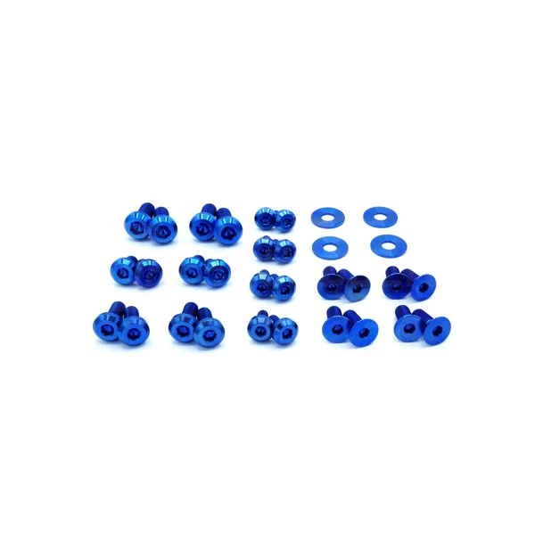 This 32 piece kit includes bolts and washers manufactured from extremely durable, anticorrosive, and lightweight GR5 titanium metal.
