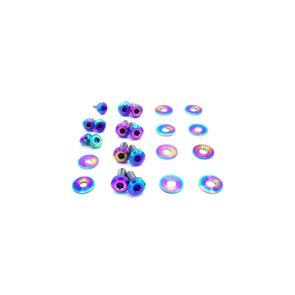 This 23 piece kit includes nuts, and washers manufactured from extremely durable, anticorrosive, and lightweight GR5 titanium metal.