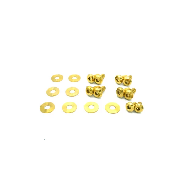 This 18 piece kit includes bolts and washers manufactured from extremely durable, anticorrosive, and lightweight GR5 titanium metal.