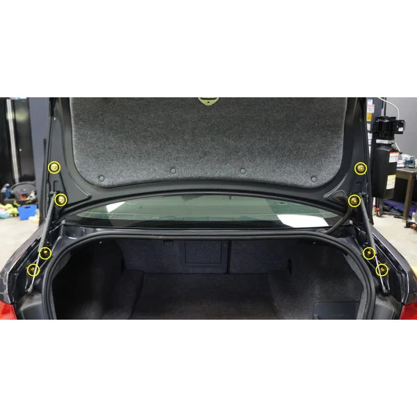 Dress Up Bolts Titanium Hardware Trunk kit for the BMW 335i is designed to replace the trunk hinge hardware.