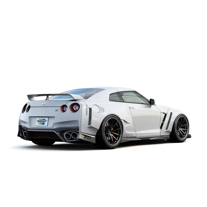 Initially developed for competition on the FIA Intercontinental Drifting Cup winning, 2017 TRUST Racing D1 R35 GT-R, is the new GReddy R35 MY17 Widebody Aero Kit. The five piece aero kit enhances and refines the muscular look of 2017-on model year Nissan GT-R. It replaces the factory front lip with a more flowing and stylish lip spoiler. The dynamic front and rear over-fender sets add 75mm in width on each side. This makes it possible to house wider or more aggressive off-set wheels and tires for both competition use and/or flawless vehicle stance. The GReddy aero kit was designed and is manufacturer in Japan, with only the finest FRP materials and craftsmanship. The kit can be ordered as a full kit or purchased individually as a front lip, front over-fender set or rear over-fender set.