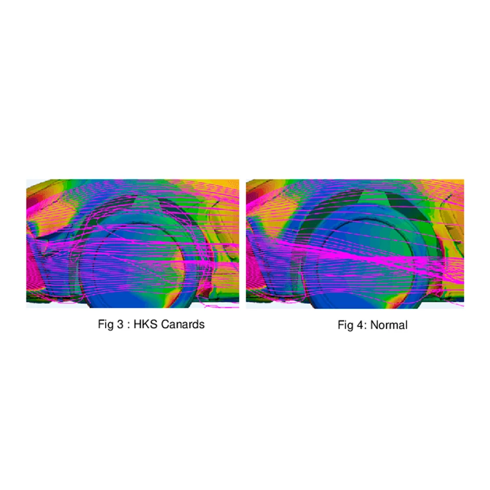 Reduce front-end lift by generating a vortex and helping to re-direct drag-inducing turbulent air away from the wheel wells. Made of CFRP.