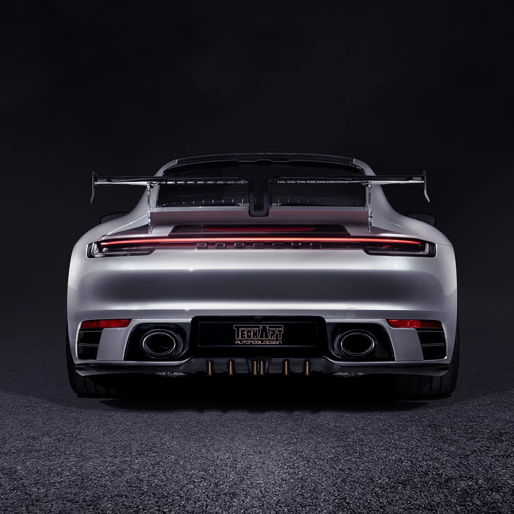 TECHART Aero Wings are located above the diffusor and add a finishing touch to the 911�s rear. The trims surround the 911�s exhaust tips on both sides and add emphasis to the rear air outlets.