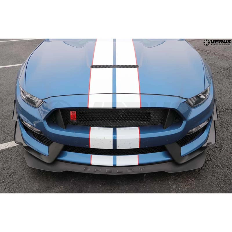 The Verus Engineering Dual-Element Dive Plane (Canard) Kit adds front-end downforce without the necessity of moving the front splitter further forward or lower. This is great for customers that still utilize their GT350 or GT350R on the street and track! The dive planes shift aero balance forward, increase front end downforce, while introducing minimal drag according to our CFD data. The units do so by increasing evacuation out of the front wheel wells.
